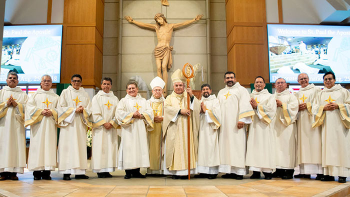 Bishop Gerald Barnes, Bishop of San Bernardino Diocese ordained eleven men permanent Deacons for the Diocese on Aug. 25 at St. Paul the Apostle Catholic Church, Chino Hills. This was the largest class in the 40-year history of the diocese.
