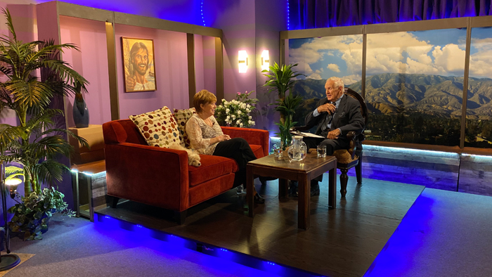 The highlight of the taping was the new set. During the lock down period we worked on redesigning the sets and this was the first taping in it. There were three guests interviewed by Jack Knight our host. The guests were Gigi Perreau the child actress and theater person of yester years, Richard Marciniak the Chairman of Knights of Colombus in California and Aileen Munoz one of the youth from FOCUS, a campus movement/ministry.