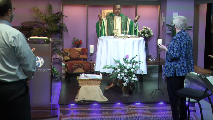 The streaming of the Mass was begun on 17th June sitting around a table in the studio. We had many suggestions and observations after our first transmission from our audience. We are improving during each transmission listening to the observation and suggestions of our followers and viewers. The new set has made the streaming more lively and colorful.